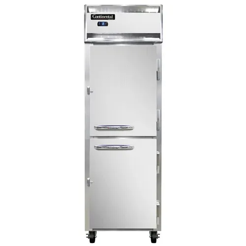 Ignite culinary passion with the Continental Refrigerator, 1FSNSSHD Freezer, Reach-In. This top-of-the-line freezer is designed to meet the demanding needs of commercial restaurants. With its stainless steel exterior and interior, it not only looks sleek but also ensures durability and easy cleaning. The shallow depth and half-height solid doors make it perfect for busy kitchens with limited space. The electronic control with a digital display allows for precise temperature management, while the hi-low alarm alerts you if the temperature deviates from the set range. Powered by a 1/3 HP compressor, this freezer provides efficient and reliable cooling. Made in the USA, it meets the highest quality standards and is cETLus and NSF certified. Whether you need to store ingredients, frozen goods, or prepared meals, the Continental Refrigerator, 1FSNSSHD Freezer, Reach-In is the ideal choice for any commercial restaurant.