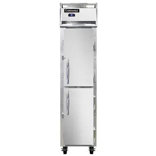 Culinary excellence in every dish starts with the Continental Refrigerator, 1RSENHD. This slim line reach-in refrigerator is designed to meet the demands of a commercial restaurant kitchen. With its stainless steel front and aluminum interior, this refrigerator is not only durable but also easy to clean, ensuring food safety and hygiene. The half-height solid doors provide easy access to the contents while maintaining temperature consistency. The electronic control with a digital display allows for precise temperature management, while the hi-low alarm alerts the staff if the temperature deviates from the set range. The electric condensate evaporator eliminates the need for manual defrosting, saving time and effort. Made in the USA and certified by cETLus and NSF, this refrigerator is a reliable and trusted choice for any professional kitchen. Elevate your culinary creations with the Continental Refrigerator, 1RSENHD.