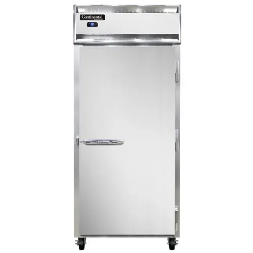 Fuel your restaurant's success with the Continental Refrigerator 1RXNSS Reach-In Refrigerator. This extra-wide, one-section refrigerator is designed to meet the demands of a busy commercial kitchen. With its stainless steel exterior and interior, it not only looks sleek but also ensures durability and easy cleaning. The full-height solid door provides easy access to the contents while keeping them securely stored. The electronic control with a digital display allows for precise temperature management, while the hi-low alarm alerts you if the temperature goes outside the desired range. The electric condensate evaporator eliminates the need for manual defrosting, saving you time and effort. Made in the USA and certified by cETLus and NSF, this refrigerator is a reliable and high-quality addition to any restaurant. Trust Continental Refrigerator to deliver exceptional performance and longevity.