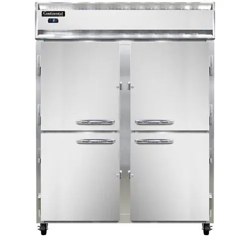 Equip your commercial kitchen with the Continental Refrigerator 2FENSAPTHD Freezer. This extra-wide, pass-thru freezer is designed to meet the demands of a busy restaurant. With a stainless steel exterior and aluminum interior, it not only looks sleek but is also durable and easy to clean. The two-section design provides ample storage space, while the half-height solid doors allow for easy access to your frozen goods. The electronic control with a digital display ensures precise temperature management, while the hi-low alarm alerts you if the temperature deviates from the set range. The electric condensate evaporator eliminates the need for manual defrosting, saving you time and effort. Powered by a 3/4 HP compressor, this freezer delivers reliable performance. Whether you're storing ingredients or frozen products, the Continental Refrigerator 2FENSAPTHD Freezer is a must-have for any commercial kitchen.