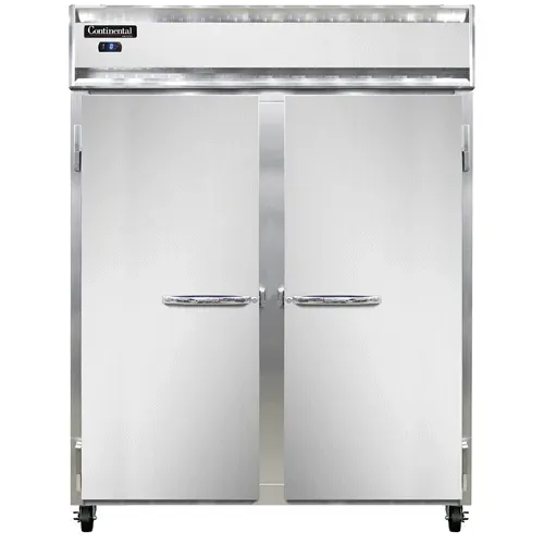 Master the art of cooking with the Continental Refrigerator 2FESNSA Freezer, Reach-In. This extra-wide, two-section freezer is designed to meet the demands of a commercial restaurant kitchen. With a spacious 57" width, it provides ample storage space for all your frozen ingredients and prepared dishes. The self-contained refrigeration system ensures consistent temperature control, while the stainless steel exterior and aluminum interior make it durable and easy to clean. The shallow depth design allows for easy access to items, and the full-height solid doors provide excellent insulation. The electronic control with a digital display allows for precise temperature adjustments, and the hi-low alarm alerts you if the temperature deviates from the set range. Made in the USA and certified by cETLus and NSF, this Continental Refrigerator freezer is a reliable and efficient addition to any commercial kitchen.