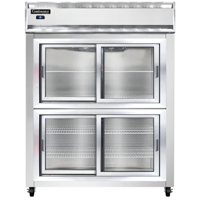 Craft culinary wonders with the Continental Refrigerator, 2RENSASGDHD, Refrigerator, Reach-In. This extra-wide, two-section refrigerator is designed for commercial restaurant use, offering ample storage space and convenient access to your ingredients. The stainless steel exterior and aluminum interior ensure durability and easy cleaning, while the wide half-height sliding glass doors provide visibility and accessibility to your food items. With electronic control and a digital display, you can easily monitor and adjust the temperature to keep your ingredients fresh. The hi-low alarm alerts you if the temperature goes outside the desired range, ensuring food safety. The electric condensate evaporator eliminates the need for manual defrosting, saving you time and effort. Made in the USA and certified by cETLus and NSF, this reach-in refrigerator is a reliable and high-quality addition to any commercial kitchen.