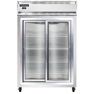 Transform your food service with the Continental Refrigerator, 2RNSASGD, Refrigerator, Reach-In. This two-section reach-in display refrigerator is designed to meet the needs of commercial restaurants. With its stainless steel exterior and aluminum interior, it not only looks sleek but also ensures durability and easy cleaning. The narrow sliding glass doors provide easy access to the contents while maintaining temperature control. The electronic control with a digital display allows for precise temperature adjustments, while the hi-low alarm alerts you if the temperature goes outside the desired range. The electric condensate evaporator eliminates the need for manual defrosting, saving you time and effort. With a 1/2 HP compressor, this refrigerator provides efficient cooling for your perishable items. Made in the USA and certified by cETLus and NSF, you can trust the quality and safety of this Continental Refrigerator. Upgrade your restaurant's refrigeration system with the 2RNSASGD and ensure your ingredients stay fresh and accessible.