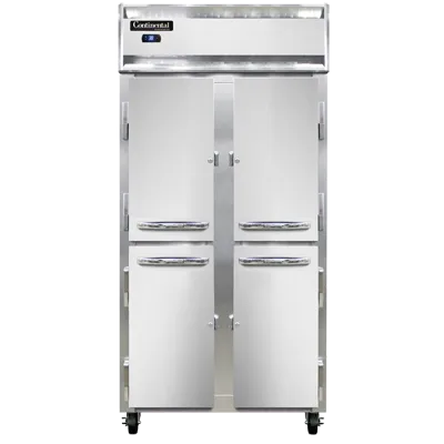 Boost your restaurant's performance with the Continental Refrigerator 2RSESNSSHD Reach-In Refrigerator. This slim line, two-section refrigerator is designed to optimize space in your commercial kitchen while providing efficient and reliable refrigeration. With its shallow depth and half-height solid doors, this refrigerator is perfect for busy kitchens where space is at a premium. The stainless steel interior and exterior not only give it a sleek and professional look but also make it easy to clean and maintain. The electronic control with a digital display allows for precise temperature management, while the hi-low alarm ensures that your perishable ingredients are always stored at the optimal temperature. Made in the USA and certified by cETLus and NSF, this Continental Refrigerator is a high-quality and durable choice for any restaurant. Upgrade your kitchen with the Continental Refrigerator 2RSESNSSHD Reach-In Refrigerator and experience enhanced efficiency and performance.
