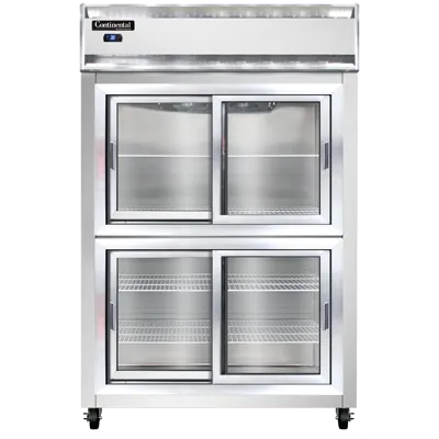 Maximize your food service potential with the Continental Refrigerator, 2RSNSASGDHD, Refrigerator, Reach-In. This top-of-the-line refrigerator is designed to meet the demanding needs of commercial restaurants. With its stainless steel exterior and aluminum interior, it not only looks sleek but also ensures durability and easy cleaning. The shallow depth and narrow sliding glass half doors make it perfect for tight spaces, allowing for easy access to your stored items. The self-contained refrigeration system provides efficient cooling, while the electronic control with a digital display allows for precise temperature management. The hi-low alarm ensures that you are immediately alerted if there are any temperature fluctuations, helping you maintain the quality and freshness of your ingredients. With a powerful 1/2 HP motor, this refrigerator is built to handle the demands of a busy kitchen. NSF and cETLus certified, this refrigerator is guaranteed to meet the highest standards of safety and sanitation. Invest in the Continental Refrigerator, 2RSNSASGDHD, and elevate your restaurant's efficiency and productivity.