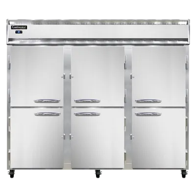 Culinary artistry redefined with the Continental Refrigerator, 3RESNSSHD, Refrigerator, Reach-In. This extra-wide, three-section refrigerator is designed to meet the demands of a busy commercial restaurant. With its shallow depth and half-height solid doors, it provides easy access to your ingredients while maximizing space efficiency. The stainless steel exterior and interior not only give it a sleek and professional look but also make it durable and easy to clean. The electronic control with a digital display allows for precise temperature management, ensuring that your perishable items stay fresh for longer. The hi-low alarm alerts you if the temperature goes outside the desired range, helping you maintain food safety standards. Made in the USA and certified by cETLus and NSF, this refrigerator is built to last and meets the highest industry standards. Upgrade your kitchen with the Continental Refrigerator, 3RESNSSHD, and experience the difference in performance and reliability.