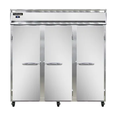 Culinary excellence in every dish starts with the Continental Refrigerator, 3RSNSA. This reach-in refrigerator is designed to meet the demands of a commercial restaurant, ensuring that your ingredients stay fresh and your kitchen runs smoothly. With its shallow depth and full-height solid doors, this refrigerator maximizes storage space while maintaining a sleek and professional appearance. The stainless steel exterior and aluminum interior not only provide durability but also make cleaning a breeze. The electronic control with a digital display allows for precise temperature management, while the hi-low alarm ensures that you are alerted if the temperature deviates from the desired range. Powered by a 1/2 HP compressor, this refrigerator is both efficient and reliable. Made in the USA and certified by cETLus and NSF, you can trust the Continental Refrigerator, 3RSNSA to deliver exceptional performance and quality for your restaurant.