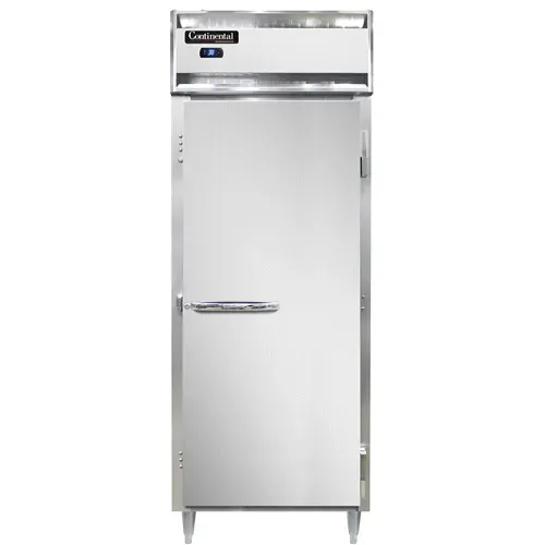 Introducing the Continental Refrigerator D1RENSAPT, a must-have for commercial restaurants looking to simplify their operations. This designer line wide refrigerator is perfect for busy kitchens, offering a pass-thru design and a spacious 28-1/2" width. With its one-section layout and self-contained refrigeration system, this refrigerator ensures optimal storage and temperature control for your ingredients. The stainless steel exterior and aluminum interior not only provide durability but also make cleaning a breeze. The wide full-height solid doors offer easy access to your stored items, while the electronic control with a digital display allows for precise temperature adjustments. Plus, the hi-low alarm alerts you if the temperature deviates from the set range, ensuring the safety of your perishable goods. With 6" stainless steel legs and a 1/4 HP compressor, this refrigerator is built to withstand the demands of a commercial kitchen. Simplify your restaurant operations with the Continental Refrigerator D1RENSAPT.