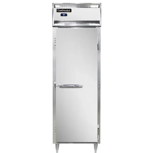 Culinary artistry redefined with the Continental Refrigerator D1RNSS Reach-In Refrigerator. This one-section, 21 cu. ft. refrigerator is designed to meet the demands of a commercial restaurant kitchen. With its stainless steel exterior and interior, it not only looks sleek but also ensures durability and easy cleaning. The full-height solid door provides easy access to the contents while keeping them well-insulated. The electronic control with a digital display allows for precise temperature management, while the hi-low alarm alerts you if the temperature goes outside the desired range. The 6" stainless steel legs provide stability and make it easy to clean underneath. Made in the USA, this refrigerator is cETLus and NSF certified, guaranteeing its quality and safety. Upgrade your kitchen with the Continental Refrigerator D1RNSS Reach-In Refrigerator and experience the perfect blend of functionality and style.