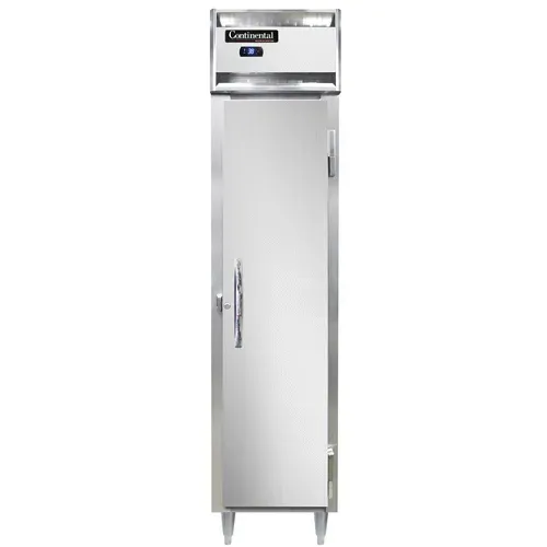 Unleash gastronomic brilliance with the Continental Refrigerator D1RSESNSS Reach-In Refrigerator. Designed by Continental Refrigerator, a trusted name in commercial refrigeration, this slimline refrigerator is perfect for commercial restaurant use. With its stainless steel exterior and interior, as well as a stainless steel front and narrow full-height solid door, this refrigerator exudes durability and style. The shallow depth cabinet allows for easy placement in tight spaces, while the electronic control with digital display ensures precise temperature management. The hi-low alarm feature alerts you to any temperature fluctuations, ensuring the freshness and safety of your ingredients. Equipped with a 1/4 HP compressor, this refrigerator provides efficient cooling while maintaining energy efficiency. Made in the USA and certified by cETLus and NSF, you can trust the quality and reliability of this Continental Refrigerator. Upgrade your restaurant's refrigeration system with the Continental Refrigerator D1RSESNSS Reach-In Refrigerator.