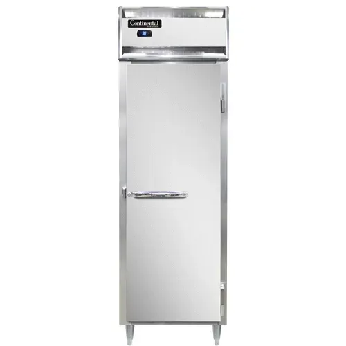 Cook with precision using the Continental Refrigerator D1RSNSS* Reach-In Refrigerator. This designer line refrigerator is perfect for commercial restaurant use, offering a shallow depth cabinet that maximizes space without compromising on storage capacity. The stainless steel exterior and interior not only provide durability but also give a sleek and professional look to your kitchen. The full-height solid door ensures easy access to your ingredients while keeping them at the optimal temperature. With electronic control and a digital display, you can easily monitor and adjust the temperature to meet your specific needs. The hi-low alarm alerts you if the temperature deviates from the set range, ensuring the safety of your perishable items. Equipped with a 1/4 HP compressor, this refrigerator provides efficient cooling while being energy-saving. Made in the USA and certified by cETLus and NSF, you can trust the quality and reliability of this Continental Refrigerator. Upgrade your kitchen with this top-of-the-line reach-in refrigerator and experience the convenience and precision it brings to your culinary endeavors.