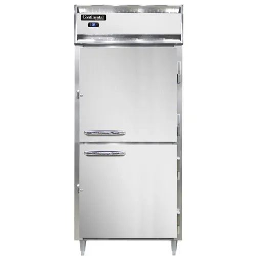 Boost your restaurant's performance with the Continental Refrigerator D1RXNPTHD Pass-Thru Refrigerator. This designer line extra-wide refrigerator is perfect for commercial restaurant use. With its one-section design and self-contained refrigeration, it offers convenience and efficiency. The aluminum exterior and interior, along with the stainless steel front, ensure durability and easy cleaning. The wide half-height solid doors provide easy access to your stored items. The electronic control with a digital display allows for precise temperature management, while the hi-low alarm alerts you to any temperature fluctuations. The 6" adjustable stainless steel legs ensure stability and easy leveling. With a 1/4 HP compressor, this refrigerator provides reliable cooling power. Whether you need to store ingredients, prepared dishes, or beverages, the Continental Refrigerator D1RXNPTHD Pass-Thru Refrigerator is the perfect addition to your commercial kitchen.