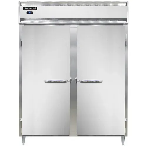 Boost your restaurant's performance with the Continental Refrigerator D2REN Reach-In Refrigerator. This designer line wide refrigerator is a must-have for any commercial kitchen. With its two-section design and self-contained refrigeration system, it offers ample storage space for all your perishable ingredients. The aluminum exterior and interior, along with the stainless steel front, ensure durability and easy cleaning. The wide full-height stainless steel doors provide easy access to your stored items. The electronic control with a digital display allows for precise temperature management, while the hi-low alarm alerts you of any temperature fluctuations. The 6" stainless steel legs provide stability and make cleaning underneath a breeze. With a 1/3 HP compressor, this refrigerator is powerful enough to handle the demands of a busy restaurant. Made in the USA and certified by cETLus and NSF, you can trust the quality and reliability of this Continental Refrigerator. Upgrade your kitchen today and experience the difference.