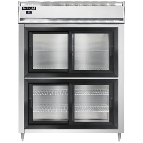 Realize kitchen dreams with the Continental Refrigerator D2RESNSSSGDHD Reach-In Refrigerator. This designer line wide refrigerator is perfect for commercial restaurant use, offering a spacious 57"W two-section cabinet with a shallow depth design. The stainless steel exterior and interior not only provide durability but also give a sleek and professional look to any kitchen. The wide half-height sliding glass doors make it easy to access and display your food items, while the electronic control with a digital display allows for precise temperature management. With a hi-low alarm feature, you can ensure the safety of your perishable goods. The 6" stainless steel legs provide stability and easy cleaning. Powered by a 1/2 HP compressor, this refrigerator is both efficient and reliable. Certified by cETLus and NSF, you can trust the quality and safety of this Continental Refrigerator. Upgrade your kitchen with the D2RESNSSSGDHD Reach-In Refrigerator and experience the convenience and functionality it brings to your commercial restaurant.