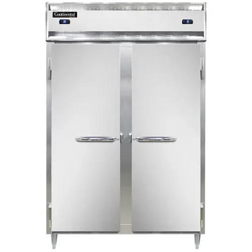 Ignite culinary passion with the Continental Refrigerator D2RFSNSS Refrigerator Freezer. This designer line reach-in unit is perfect for commercial restaurant use, offering a combination of style and functionality. The stainless steel exterior and interior not only provide a sleek and professional look but also ensure durability and easy cleaning. With a shallow depth cabinet and narrow full-height solid doors, this refrigerator freezer is designed to maximize space efficiency without compromising on storage capacity. The electronic control with a digital display allows for precise temperature management, while the hi-low alarm ensures food safety. Equipped with dual 1/4 & 1/3 HP compressors, this self-contained refrigeration system delivers optimal cooling performance. Made in the USA and certified by cETLus and NSF, the Continental Refrigerator D2RFSNSS is a reliable and high-quality choice for any commercial kitchen.