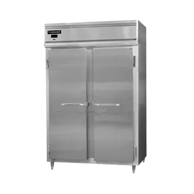 Maximize your food service potential with the Continental Refrigerator D2RNSS Reach-In Refrigerator. This designer line refrigerator is perfect for commercial restaurant use, offering a spacious two-section design and self-contained refrigeration for optimal storage and temperature control. The stainless steel exterior and interior not only provide durability but also give your kitchen a sleek and professional look. The full-height stainless steel doors are not only visually appealing but also ensure easy access to your stored items. With electronic control and a digital display, you can easily monitor and adjust the temperature to meet your specific needs. The hi-low alarm alerts you if the temperature goes outside the desired range, ensuring the safety of your perishable goods. The 6" stainless steel legs provide stability and make cleaning underneath the refrigerator a breeze. With a 1/3 HP compressor, this refrigerator is powerful enough to handle the demands of a busy commercial kitchen. Trust in the quality and reliability of Continental Refrigerator, a brand that is made in the USA and certified by cETLus and NSF. Upgrade your restaurant's refrigeration capabilities with the Continental Refrigerator D2RNSS Reach-In Refrigerator.