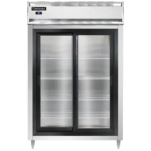 Master the art of flavor with the Continental Refrigerator D2RNSSGD Reach-In Refrigerator. This designer line refrigerator is perfect for commercial restaurant use, offering a spacious 50.0 cu. ft. capacity to store all your ingredients and keep them fresh. The stainless steel exterior and interior not only provide durability but also give a sleek and professional look to your kitchen. The full-height glass doors allow for easy visibility of the contents, making it convenient to locate items quickly. With electronic control and a digital display, you can easily monitor and adjust the temperature to ensure optimal food preservation. The hi-low alarm alerts you if the temperature goes above or below the desired range, preventing any spoilage. Equipped with a 1/2 HP self-contained refrigeration system, this reach-in refrigerator is energy-efficient and reliable. Made in the USA and certified by cETLus and NSF, you can trust the quality and safety of this Continental Refrigerator. Upgrade your restaurant's refrigeration system with the D2RNSSGD Reach-In Refrigerator and experience the difference in flavor and efficiency.