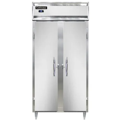 Introducing the Continental Refrigerator D2RSEN Reach-In Refrigerator, designed to simplify restaurant operations. This slimline refrigerator is a must-have for any commercial kitchen, offering a spacious and efficient storage solution. With its two-section design and narrow full-height stainless steel doors, this refrigerator maximizes storage capacity while minimizing floor space. The aluminum exterior and interior, along with the stainless steel front, ensure durability and easy cleaning, making it perfect for busy restaurant environments. The electronic control with a digital display allows for precise temperature management, while the hi-low alarm ensures food safety. Equipped with a 1/4 HP self-contained refrigeration system, this refrigerator provides reliable cooling performance. The 6" stainless steel legs offer stability and ease of cleaning. NSF and cETLus certified, this refrigerator is made in the USA, guaranteeing its authenticity and quality. Upgrade your restaurant's refrigeration system with the Continental Refrigerator D2RSEN Reach-In Refrigerator and experience enhanced efficiency and organization in your kitchen.