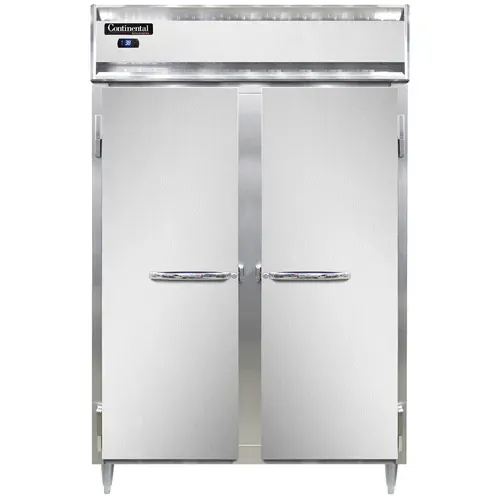 Fuel your passion for cooking with the Continental Refrigerator D2RSN* Reach-In Refrigerator. This designer line refrigerator is perfect for commercial restaurant use, offering a shallow depth cabinet that maximizes space without compromising on storage capacity. The aluminum exterior and interior, along with the stainless steel front, ensure durability and easy cleaning. The full-height stainless steel doors provide easy access to your ingredients, while the electronic control with a digital display allows for precise temperature management. With a hi-low alarm, you can rest assured that your perishable items are always stored at the optimal temperature. The 6" stainless steel legs provide stability and make cleaning underneath a breeze. Made in the USA and certified by cETLus and NSF, this Continental Refrigerator is a reliable and high-quality addition to any commercial kitchen. Upgrade your restaurant's refrigeration capabilities with the Continental Refrigerator D2RSN* Reach-In Refrigerator.