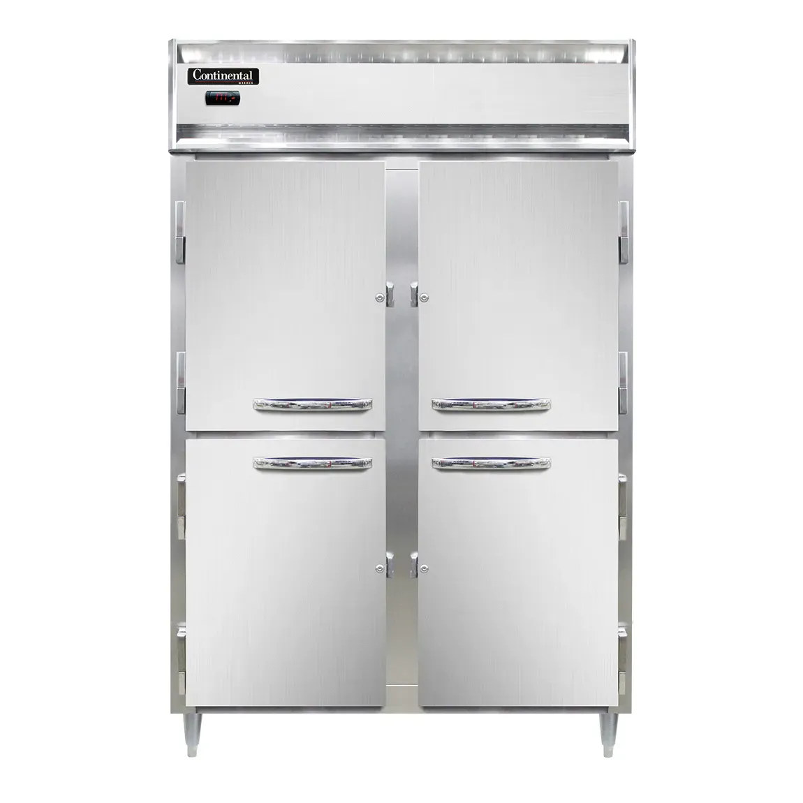 Introducing the Continental Refrigerator DL2W-SA-HD Heated Cabinet, Reach-In - the perfect addition to drive restaurant profitability. Designed by Continental Refrigerator, this two-section reach-in cabinet is built to optimize your commercial kitchen's efficiency. With a stainless steel exterior and an aluminum interior, this cabinet is not only durable but also easy to clean, ensuring a hygienic environment for food storage. The standard depth cabinet features narrow half-height doors, allowing for easy access to your stored items without taking up too much space. The electronic control with a digital display provides precise temperature management, while the hi-low alarm alerts you if the temperature deviates from the set range. Whether you need to keep your dishes warm or store pre-cooked meals, the Continental Refrigerator DL2W-SA-HD Heated Cabinet, Reach-In is the reliable solution for your restaurant's needs.