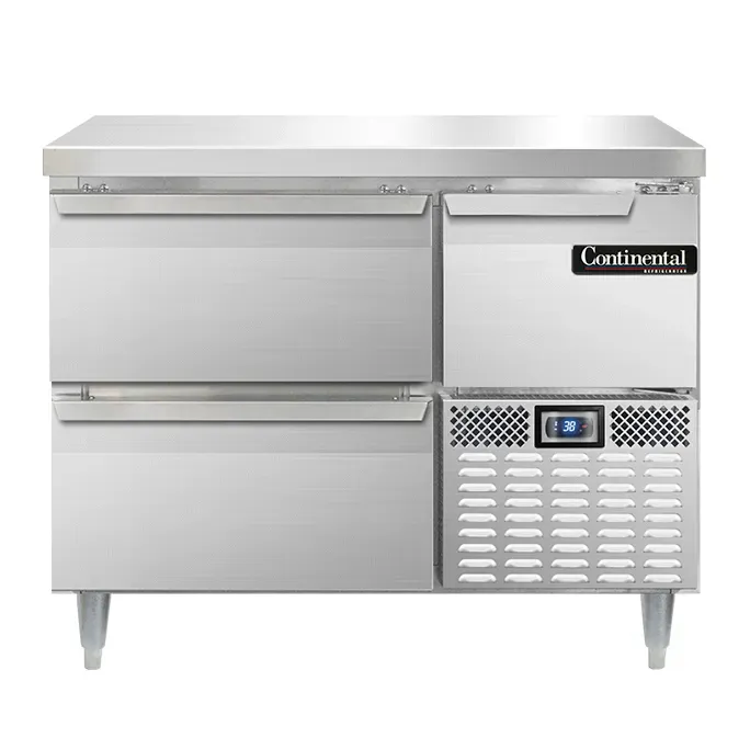 Culinary excellence in every dish starts with the Continental Refrigerator DRA43NSS-F. This top-of-the-line work top fish file refrigerator is designed to meet the demanding needs of commercial restaurants. With its 300 stainless steel work top, this refrigerator provides a durable and hygienic surface for food preparation. The unit features two drawers and one half-height field reversible door, allowing for easy access and organization of fish and poultry products. The stainless steel exterior not only adds a sleek and professional look to any kitchen, but it also ensures durability and easy cleaning. The electronic control with digital display and hi-low alarm provide precise temperature control and monitoring, ensuring that your fish and poultry products are stored at the optimal temperature. With side-mounted refrigeration and adjustable stainless steel legs, this refrigerator offers flexibility in installation and positioning. Powered by a 1/3 HP motor, this refrigerator is both energy-efficient and reliable. Made in the USA and certified by cETLus and NSF, the Continental Refrigerator DRA43NSS-F is the perfect choice for any commercial restaurant looking to elevate their culinary creations.