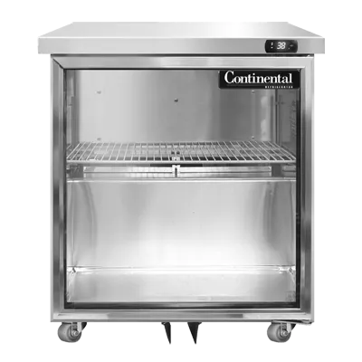 Equip your commercial kitchen with the Continental Refrigerator SW27NGD-U Undercounter Display Refrigerator. This one-section refrigerator is designed to meet the needs of busy restaurants, offering a spacious 7.4 cu ft capacity to store all your perishable ingredients. The glass door provides easy visibility, allowing you to quickly locate items without opening the door and letting cold air escape. The LED interior lighting further enhances visibility, ensuring that your ingredients are always easy to find. With its stainless steel front, top, and end panels, as well as an aluminum interior, this refrigerator is built to withstand the demands of a commercial kitchen. The front breathing design and rear-mounted self-contained refrigeration system ensure efficient cooling while minimizing noise. The electronic control with a digital display allows for precise temperature management, and the hi-low alarm alerts you if the temperature deviates from the set range. Made in the USA and certified by cETLus and NSF, this Continental Refrigerator is a reliable and high-quality addition to any commercial kitchen.