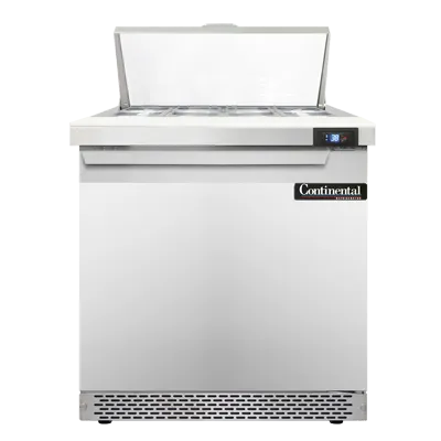 Master the art of cooking with the Continental Refrigerator SW32N8-FB Refrigerated Counter, Sandwich / Salad Unit. This top-of-the-line unit is designed to meet the needs of commercial restaurants, ensuring efficiency and convenience in food preparation. With a 9.0 cu ft capacity and eight 1/6 size pans, you'll have plenty of space to store and organize your ingredients. The unit also features a 12" cutting board, allowing you to easily assemble sandwiches and salads with precision. The stainless steel top, front, and end panels not only provide durability but also give the unit a sleek and professional look. The electronic control with a digital display and hi-low alarm ensures precise temperature control and alerts you if there are any fluctuations. With rear-mounted self-contained refrigeration and 3-3/4" casters, this unit is easy to move and position in your kitchen. Trust Continental Refrigerator for quality and reliability in your commercial kitchen.
