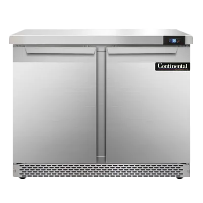 Transform your food service with the Continental Refrigerator SW36N-FB Refrigerated Counter. This work top refrigerator is designed to meet the demands of a busy commercial restaurant. With a 36" width and a 10.3 cu ft capacity, it provides ample space for storing ingredients and prepared dishes. The stainless steel flat top not only adds a sleek and professional look to your kitchen, but it also serves as a convenient workspace. The two-section design with field rehingeable doors allows for easy access and organization. The electronic control with digital display ensures precise temperature management, while the hi-low alarm alerts you if the temperature deviates from the set range. The rear mounted self-contained refrigeration system, powered by a 1/5 hp compressor, ensures efficient cooling. With its durable construction and NSF certification, this work top refrigerator is a reliable and safe choice for any commercial kitchen.