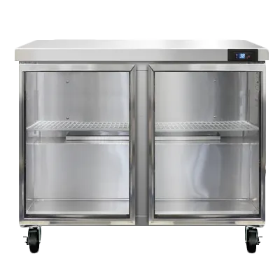 Enhance the heart of your restaurant with the Continental Refrigerator SW36NGD Refrigerated Counter. This work top display refrigerator is designed to meet the demands of a busy commercial kitchen. With a spacious 36"W and a capacity of 10.3 cu ft, it provides ample storage space for your ingredients and prepared dishes. The two-section design and glass doors allow for easy access and visibility of your products. The stainless steel flat top not only provides a durable work surface but also adds a sleek and professional look to your kitchen. The LED interior lighting ensures that your items are well-lit and easily visible. With electronic control and a digital display, you can easily monitor and adjust the temperature to meet your specific needs. The hi-low alarm alerts you if the temperature goes outside the desired range, ensuring the safety of your food. The rear mounted self-contained refrigeration system and R290 Hydrocarbon refrigerant provide efficient cooling while minimizing environmental impact. Made in the USA, this refrigerated counter is cETLus and NSF certified, guaranteeing its quality and reliability. Upgrade your restaurant with the Continental Refrigerator SW36NGD and experience enhanced efficiency and productivity in your kitchen.