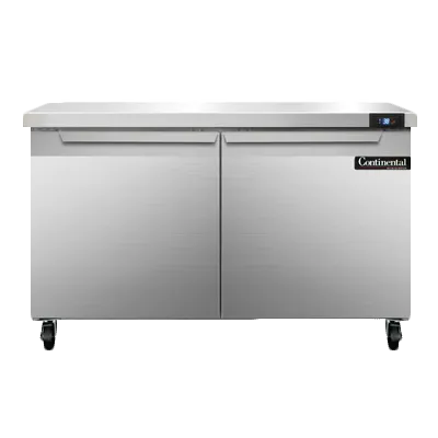 Introducing the Continental Refrigerator SW48N, a reliable and efficient refrigerated counter designed to simplify restaurant operations. With its 48"W and 13.4 cu ft capacity, this work top refrigerator offers ample space for storing ingredients, ensuring freshness and reducing food waste. The two-section design and field rehingeable doors provide easy access to the stored items, while the stainless steel flat top adds durability and functionality. The stainless steel front and end panels not only enhance the unit's aesthetics but also make it easy to clean and maintain. Inside, the aluminum interior ensures optimal temperature distribution, while the electronic control with a digital display allows for precise temperature management. Powered by rear-mounted self-contained refrigeration and using R290 Hydrocarbon refrigerant, this unit is energy-efficient and environmentally friendly. Made in the USA and certified by cETLus and NSF, the Continental Refrigerator SW48N is the perfect addition to any commercial restaurant, offering reliability, performance, and peace of mind.