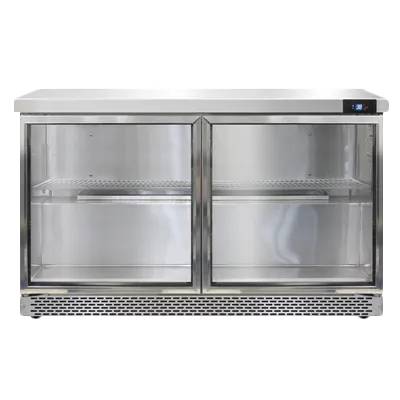 Cook with precision using the Continental Refrigerator SW48NGD-FB Refrigerated Counter. This work top display refrigerator is designed to meet the demands of a commercial restaurant. With a 48"W size and a 13.4 cu ft capacity, it provides ample space for storing ingredients and prepared dishes. The stainless steel flat top and glass doors not only add a sleek and professional look to your kitchen but also make it easy to monitor the contents inside. The LED interior lighting ensures clear visibility, even in low-light conditions. Equipped with electronic control and a digital display, you can easily adjust and monitor the temperature to keep your food fresh. The hi-low alarm alerts you if the temperature goes outside the desired range, ensuring food safety. With rear-mounted self-contained refrigeration and 3-3/4" casters, this unit is easy to move and position in your kitchen. Made in the USA and certified by cETLus and NSF, you can trust the quality and reliability of this Continental Refrigerator. Upgrade your restaurant kitchen with the SW48NGD-FB Refrigerated Counter and experience the convenience and efficiency it brings to your culinary operations.