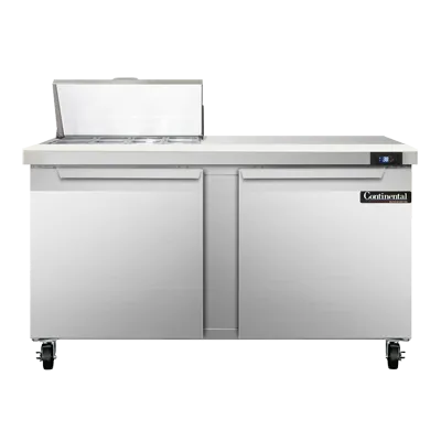 Serve with pride with the Continental Refrigerator SW60N8C Refrigerated Counter, Sandwich / Salad Unit. This top-of-the-line sandwich unit is designed to meet the demands of a busy commercial restaurant. With a spacious 60" width and a generous 17.0 cu ft capacity, it provides ample storage space for all your ingredients. The unit features two sections, each equipped with eight 1/6 size x 4" deep pans and a convenient 19" cutting board, allowing you to easily assemble sandwiches and salads with precision. The stainless steel top, front, and end panels ensure durability and easy cleaning, while the aluminum back and interior provide excellent insulation. The electronic control with a digital display allows for precise temperature management, and the hi-low alarm ensures food safety. With rear-mounted self-contained refrigeration and a 1/4 HP compressor, this unit is both efficient and reliable. Made in the USA and certified by cETLus and NSF, the Continental Refrigerator SW60N8C is the perfect addition to any commercial kitchen.