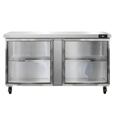 Enhance the heart of your restaurant with the Continental Refrigerator SW60NGD Refrigerated Counter. This work top display refrigerator is designed to meet the demands of a busy commercial kitchen. With a spacious 60"W and a generous 17.0 cu ft capacity, it provides ample storage space for your ingredients and prepared dishes. The two-section design and glass doors allow for easy access and visibility of your products. The stainless steel flat top not only provides a durable work surface but also adds a sleek and professional look to your kitchen. The LED interior lighting illuminates the contents, making it easy to find what you need. The electronic control with digital display allows for precise temperature control, while the hi-low alarm ensures that your food stays at the optimal temperature. Made in the USA and NSF certified, this refrigerated counter is a reliable and efficient addition to any commercial restaurant.