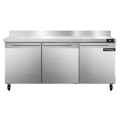 Fuel your restaurant's success with the Continental Refrigerator SW72NBS Refrigerated Counter. This work top refrigerator is designed to meet the demands of a busy commercial kitchen. With a spacious 72" width and a generous 20.6 cu ft capacity, it provides ample storage space for all your ingredients and supplies. The three-section design allows for easy organization and access to your items.