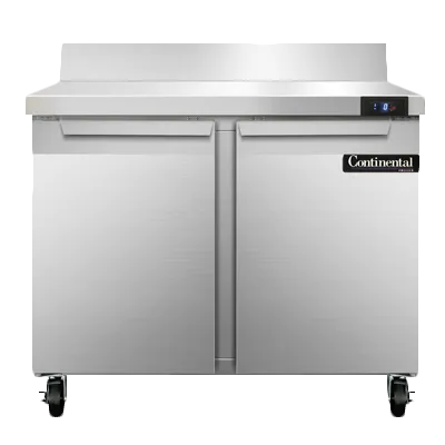 Enhance the heart of your restaurant with the Continental Refrigerator SWF36NBS Freezer Counter. This work top freezer is designed to meet the demands of a busy commercial kitchen. With a spacious 36"W and a 10.3 cu ft capacity, it provides ample storage space for all your frozen ingredients. The stainless steel top with a 5-1/2"H backsplash not only adds a sleek and professional look to your kitchen, but also makes cleaning a breeze. The two-section design with field rehingeable doors allows for easy access and organization of your frozen goods. The electronic control with a digital display ensures precise temperature control, while the hi-low alarm alerts you if the temperature goes out of range. Made in the USA, this freezer counter is built to last and is NSF and cETLus certified for added peace of mind. Upgrade your restaurant's kitchen with the Continental Refrigerator SWF36NBS Freezer Counter.