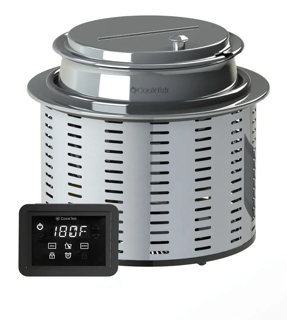 The SinAquaTM Souper is a portable countertop unit from CookTek used for rethermalizing food and precision holding. Employing a forward-thinking design and high-contrast, easy-to-use capacitive touch control, the SinAquaTM Souper can take liquid foods from an unfrozen, chilled state through the food safety danger zone in as little as 45 minutes. After rethermalization, food is held at a precise temperature within a selectable range of 140–200˚F / 60–95˚C. Utilizing CookTek inductive heating technology, the SinAquaTM Souper consistently heats food without scorching and holds food twice as long as steam wells, while using less than half the energy. The SinAquaTM Souper eliminates maintenance and plumbing associated with traditional soup warmers.