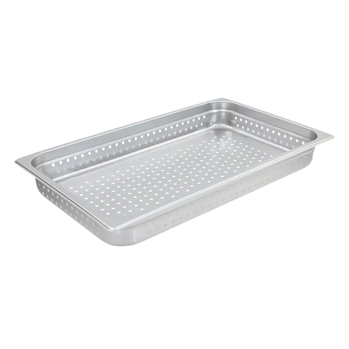 Stay ahead in the ever-evolving culinary landscape with Crestware's 5006P Steam Table Pan. Designed for commercial restaurant use, this stainless steel pan is a must-have for any professional kitchen. With a full-size and 6" deep capacity, it provides ample space for holding and serving large quantities of food. The perforated design allows for efficient draining, ensuring that your dishes stay fresh and delicious. The Saf-T-Rim and flat edge provide a secure grip and prevent spills, while the jam reduction shoulder makes stacking and storing a breeze. Made from 18/8 stainless steel and 24 gauge, this pan is durable and built to last. NSF certified and Saf-T-Stak compatible, it meets the highest standards of quality and safety. Whether you're running a bustling buffet or a busy catering service, Crestware's 5006P Steam Table Pan is the perfect addition to your kitchen arsenal.