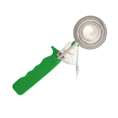 Innovate with versatile cooking solutions with Crestware's DD12 Disher, Standard Round Bowl. This deluxe disher is a must-have tool for any commercial restaurant. Made with high-quality 18/8 stainless steel, it ensures durability and longevity, even with heavy use. The thumb lever allows for easy portion control, making it ideal for serving consistent and precise amounts of food. The color-coded ergonomic handle in green adds a touch of convenience, allowing for quick identification and preventing cross-contamination. It is NSF certified, guaranteeing its safety and suitability for use in a commercial kitchen. Whether you're scooping ice cream, mashed potatoes, or cookie dough, Crestware's DD12 Disher is the perfect tool to streamline your food preparation process and deliver consistent results every time.