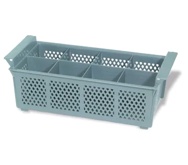Set the stage for culinary brilliance with Crestware's FWB8 Dishwasher Rack for Flatware. This gray, chemical-resistant polymer rack is designed specifically for commercial restaurant use, ensuring durability and longevity. With eight compartments and convenient handles, this dishwasher flatware rack allows for easy organization and transportation of your restaurant's flatware. Its dishwasher-safe design makes cleaning a breeze, saving your staff valuable time and effort. Whether you're running a bustling diner or an upscale bistro, this Crestware dishwasher rack is a must-have for any commercial kitchen. Invest in quality and efficiency with Crestware's FWB8 Dishwasher Rack for Flatware.