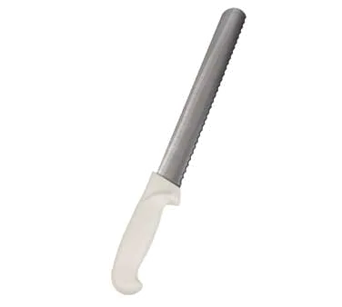 Invest in quality for an unparalleled cooking adventure with Crestware's KN53 Slicer Knife. Designed specifically for commercial restaurant use, this knife is a must-have tool for any professional chef. The 12" serrated blade is made from high carbon German steel, ensuring exceptional durability and precision slicing. The polypropylene handle provides a comfortable grip, allowing for effortless control and reducing hand fatigue during long hours in the kitchen. NSF certified, this knife meets the highest standards of safety and sanitation. Whether you're slicing through meats, breads, or delicate fruits, the Crestware KN53 Slicer Knife delivers exceptional performance and reliability. Elevate your culinary creations with this top-quality knife and experience the difference it makes in your kitchen.