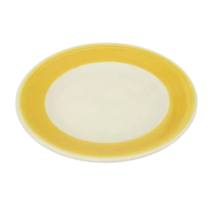 Introducing the Crestware PIC46Y Plate, China a premium tool for crafting culinary excellence. This 10-1/4" dia. round plate is designed to elevate your restaurant's dining experience. Made with rolled edge vitrified ceramic, it offers exceptional durability and is oven and microwave safe, ensuring convenience and versatility in a busy commercial kitchen. The vibrant yellow wide rim adds a touch of elegance to your presentation, making it perfect for showcasing your culinary creations. Whether you're serving appetizers, entrees, or desserts, the Crestware PIC46Y Plate, China is the ideal choice for professional chefs and restaurateurs who value both style and functionality. Elevate your restaurant's dining experience with this premium plate.