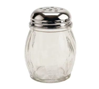 Set the culinary standard with versatile cooking solutions. Introducing the Crestware SHKR04SP Cheese / Spice Shaker, a must-have for any commercial restaurant. This swirled glass shaker is designed to elevate your dining experience with its sleek and modern look. The stainless steel perforated top ensures a controlled and even distribution of cheese or spices, adding the perfect finishing touch to your dishes. With a capacity of 6 ounces, this shaker is ideal for high-volume establishments, allowing you to serve a large number of customers without constantly refilling. Whether you're sprinkling parmesan on pasta or adding a dash of spice to your signature dish, this cheese/spice shaker is a reliable and stylish addition to your restaurant's tableware collection.