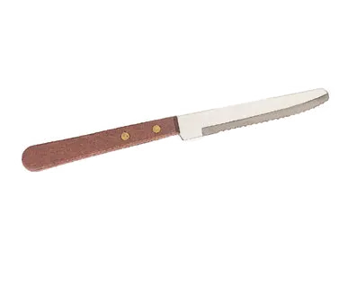 Innovative solutions for mastering the culinary arts start with Crestware's SKRW2 Steak Knife. Designed for commercial restaurant use, this knife is a game-changer in the kitchen. With a 4-1/8" blade and an overall length of 8", it is perfectly balanced for precision cutting. The round tip ensures safety while the wood handle provides a comfortable grip, even during long hours of use. Whether you're slicing through tender steaks or juicy roasts, this knife delivers exceptional performance and durability. The Crestware SKRW2 Steak Knife is a must-have for any professional chef or restaurant owner looking to elevate their culinary creations. Trust Crestware, a trusted name in the industry, to provide you with the tools you need to succeed in the kitchen.