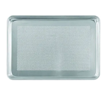 Crafted from durable 18-gauge aluminum, this full sheet pan is built to withstand the rigors of a commercial kitchen. The perforated design allows for optimal heat circulation, ensuring even baking and crispy crusts. The reinforcing wire in the beaded rim provides added strength and durability, preventing warping and ensuring long-lasting performance.