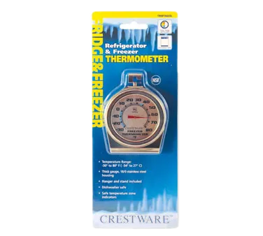 Stay ahead in the dynamic culinary landscape with Crestware's TRMT663SL Refrigerator/Freezer Thermometer. Designed specifically for commercial restaurant use, this thermometer is a must-have tool for maintaining food safety and quality. With a temperature range of -30°F to 80°F, it ensures that your perishable items are stored at the optimal temperature, preventing spoilage and reducing waste. The 2.1" dial face provides clear and accurate readings, allowing you to monitor the temperature with ease. Made with an 18/10 stainless steel housing, this thermometer is not only durable but also dishwasher safe for easy cleaning. It comes with a hanger and stand, giving you the flexibility to place it wherever you need it. Trust Crestware's TRMT663SL Refrigerator/Freezer Thermometer to keep your ingredients fresh and your customers satisfied.