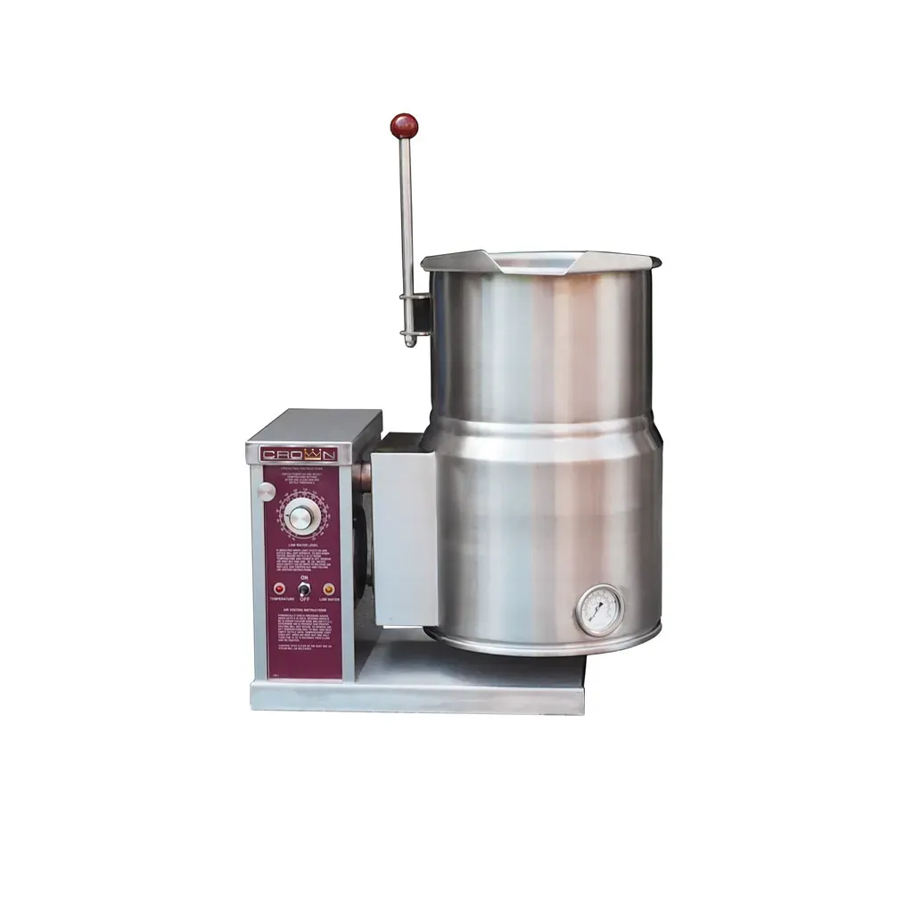 Upgrade your kitchen capabilities with precision tools like the Crown Steam EC-12TWL Electric Counter Tilt Kettle. Designed for commercial restaurant use, this electric kettle is a game-changer in the kitchen. With a 12-gallon capacity and a 2/3 jacket, it provides efficient and even heat distribution, ensuring that your soups, stews, and sauces are cooked to perfection every time. The 208V and 12Kw power supply guarantees quick heating, saving you valuable time in a busy kitchen. The left-hand tilt mechanism allows for easy pouring and serving, making it ideal for high-volume food preparation. Made by Crown Steam, a trusted name in the industry, this electric kettle is built to last and withstand the demands of a commercial kitchen. Upgrade your restaurant's cooking capabilities with the Crown Steam EC-12TWL Electric Counter Tilt Kettle and experience the difference in quality and efficiency.