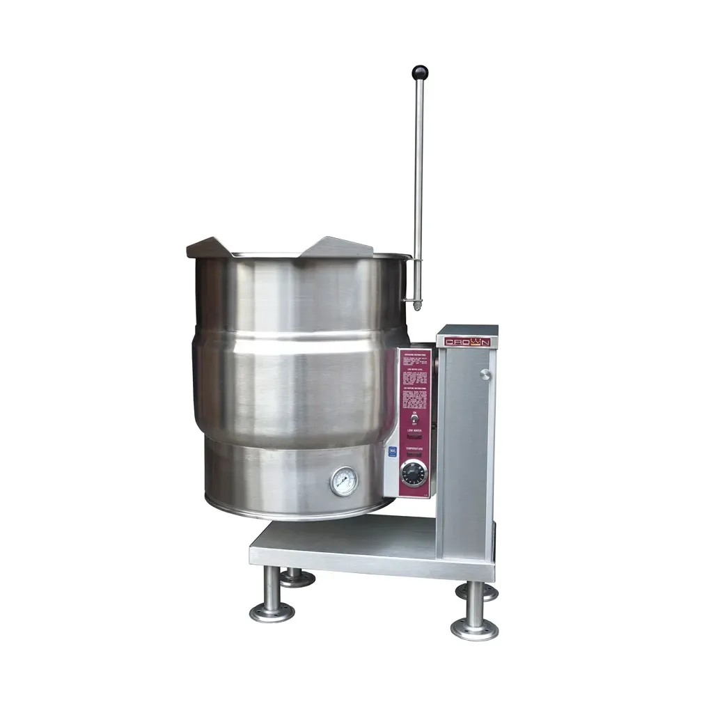 Seamless tools for crafting culinary excellence. Introducing the Crown Steam EC-20T Electric Counter Tilt Kettle, a must-have for any commercial restaurant. This 20-gallon kettle is designed to meet the demands of a busy kitchen, allowing you to effortlessly prepare large quantities of soups, stews, and sauces. The 2/3 jacket ensures even heat distribution, while the electric tilt mechanism makes pouring and serving a breeze. With a powerful 12Kw heating element, this kettle quickly reaches and maintains the desired temperature, saving you valuable time during food preparation. The 208V power supply ensures efficient operation, while the durable construction guarantees long-lasting performance. Whether you're running a bustling restaurant or a catering business, the Crown Steam EC-20T Electric Counter Tilt Kettle is the perfect addition to your kitchen arsenal. Elevate your culinary creations and streamline your cooking process with this top-of-the-line kettle.