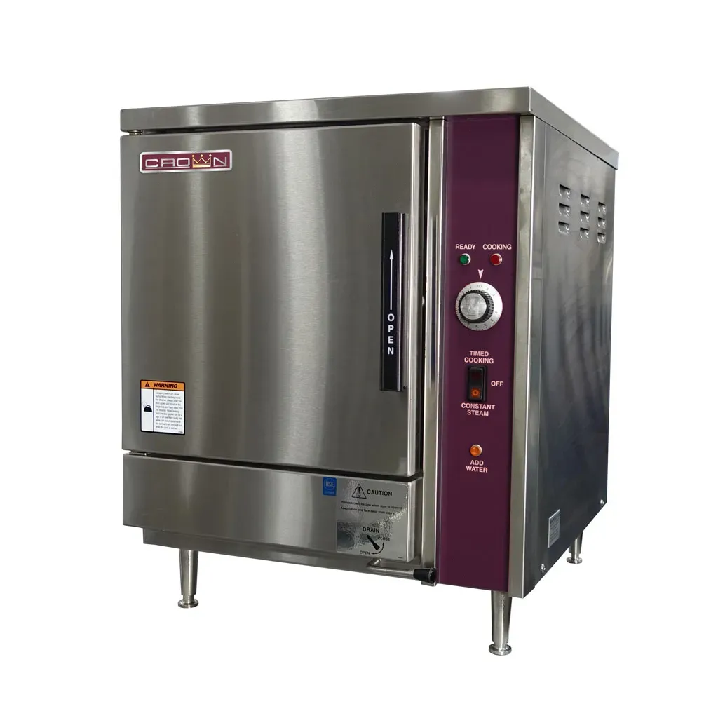 Innovate for culinary triumphs with the Crown Steam EPX-5 5 Pan Electric Steamer. Designed for commercial restaurant use, this energy-efficient steamer is a game-changer in the kitchen. With a 24" wide capacity and 15 Kw power, it can handle high-volume cooking with ease. The manual fill and drain feature allows for precise control over the steaming process, ensuring perfect results every time. Whether you're steaming vegetables, seafood, or even dumplings, this steamer delivers consistent and delicious dishes. The Crown Steam EPX-5 is an Energy Star certified appliance, meaning it not only saves you money on utility bills but also reduces your carbon footprint. With its sleek design and durable construction, this steamer is built to withstand the demands of a busy commercial kitchen. Elevate your culinary creations and streamline your cooking process with the Crown Steam EPX-5 5 Pan Electric Steamer.