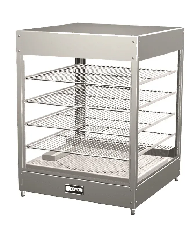 Ignite efficiency and excellence with the Doyon-Nuvu DRP4 Display Case. This countertop food warmer and display case is a must-have for any commercial restaurant. With its four shelf interior rack, it can hold up to four 18" diameter pizzas, ensuring you have plenty of space to showcase your delicious creations. The adjustable heat control allows you to maintain the perfect temperature, while the inside water pan ensures optimal humidity levels to keep your food fresh and appetizing. The tempered glass front, sides, and doors provide a clear view of your offerings, enticing customers to indulge. Made with a stainless steel interior and exterior, this display case is not only durable but also easy to clean. Trust in the Doyon-Nuvu DRP4 to elevate your restaurant's food presentation and attract hungry customers.