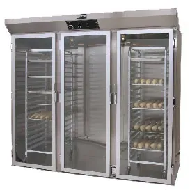 Unlock potential with powerful solutions. Introducing the Doyon-Nuvu E336 Proofer Cabinet, Roll-In. Designed for commercial restaurant use, this three-section proofer cabinet is a game-changer for your kitchen. With a capacity for two single racks and 10 shelves on 2-1/2" centers, it offers ample space to proof your dough to perfection. The solid state heat/humidity controls ensure precise temperature and humidity levels, guaranteeing consistent results every time. The auto water entry feature simplifies operation, while the full view glass doors allow you to monitor the proofing process without opening the cabinet, preserving heat and moisture. Crafted with a stainless steel interior and exterior, and an aluminum floor, this proofer cabinet is built to withstand the demands of a busy commercial kitchen. Elevate your baking game with the Doyon-Nuvu E336 Proofer Cabinet, Roll-In.